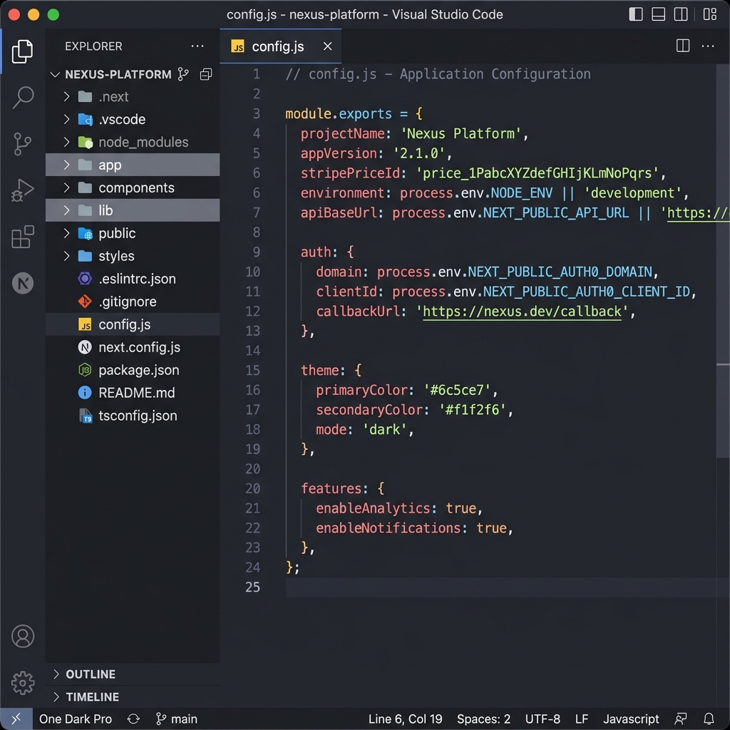 config.jsfile. Change your app name, description, and social links here, and they will update globally across the site and SEO tags.